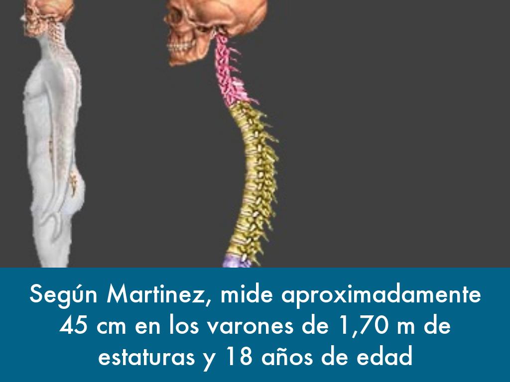 Según Martinez, mide aproximadamente 45 cm en los varones de 1,70 m de estaturas y 18 años de edad
