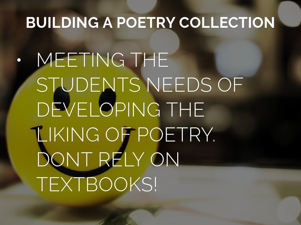 • MEETING THE STUDENTS NEEDS OF DEVELOPING THE LIKING OF POETRY. DONT RELY ON TEXTBOOKS!