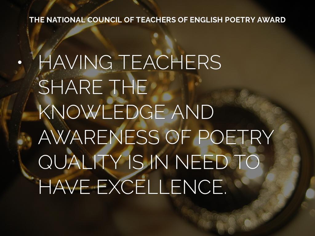 THE NATIONAL COUNCIL OF TEACHERS OF ENGLISH POETRY AWARD