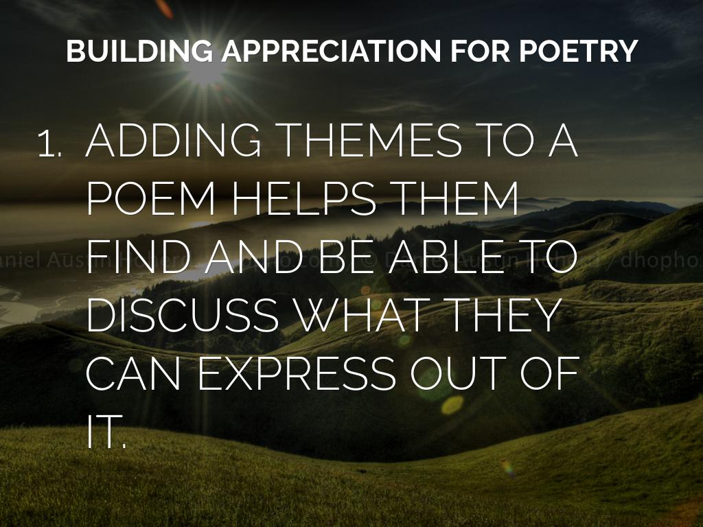 • ADDING THEMES TO A POEM HELPS THEM FIND AND BE ABLE TO DISCUSS WHAT THEY CAN EXPRESS OUT OF IT.