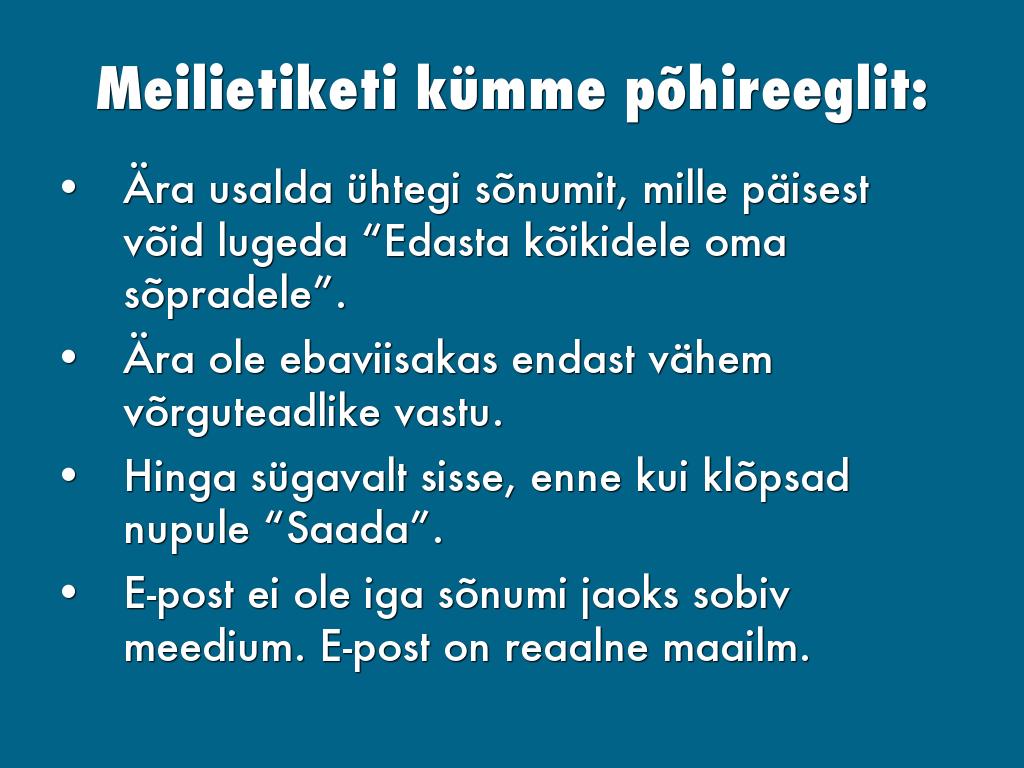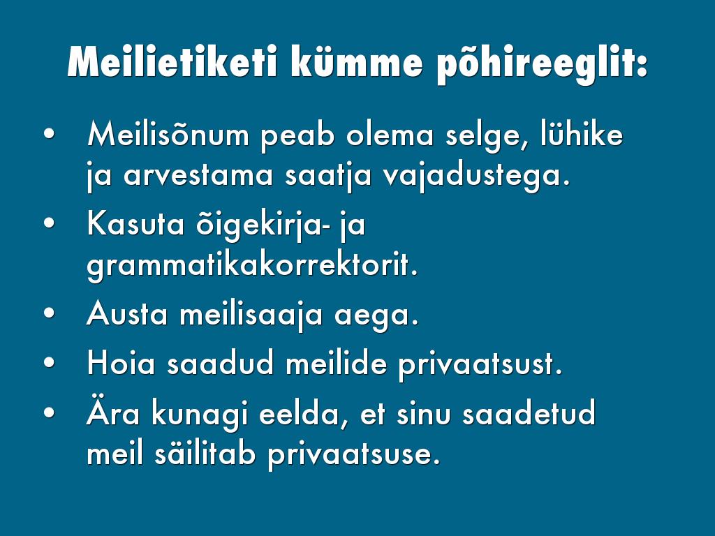 Kui meilid kellegiga esimest korda kasuta ametlikku pöördumist “Lp Härra/Proua”, ning tutvusta ka ennast.
