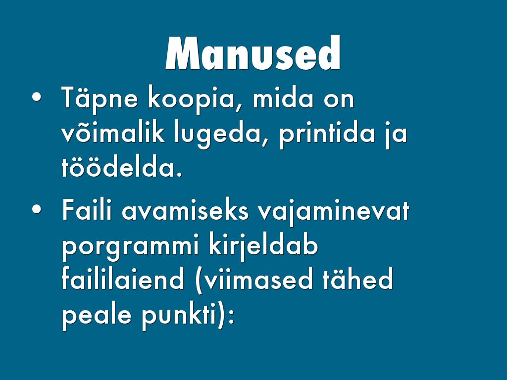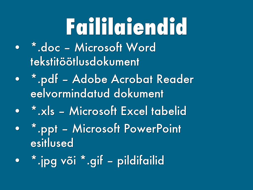 Faili avamiseks vajaminevat porgrammi kirjeldab faililaiend (viimased tähed peale punkti):