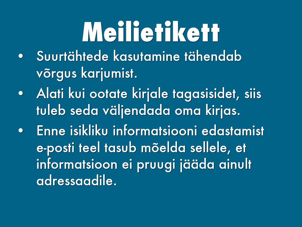 Enne isikliku informatsiooni edastamist e-posti teel tasub mõelda sellele, et informatsioon ei pruugi jääda ainult adressaadile.