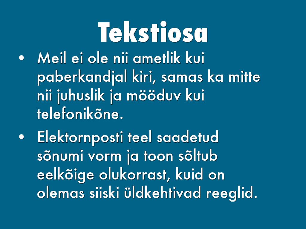 Elektornposti teel saadetud sõnumi vorm ja toon sõltub eelkõige olukorrast, kuid on olemas siiski üldkehtivad reeglid.