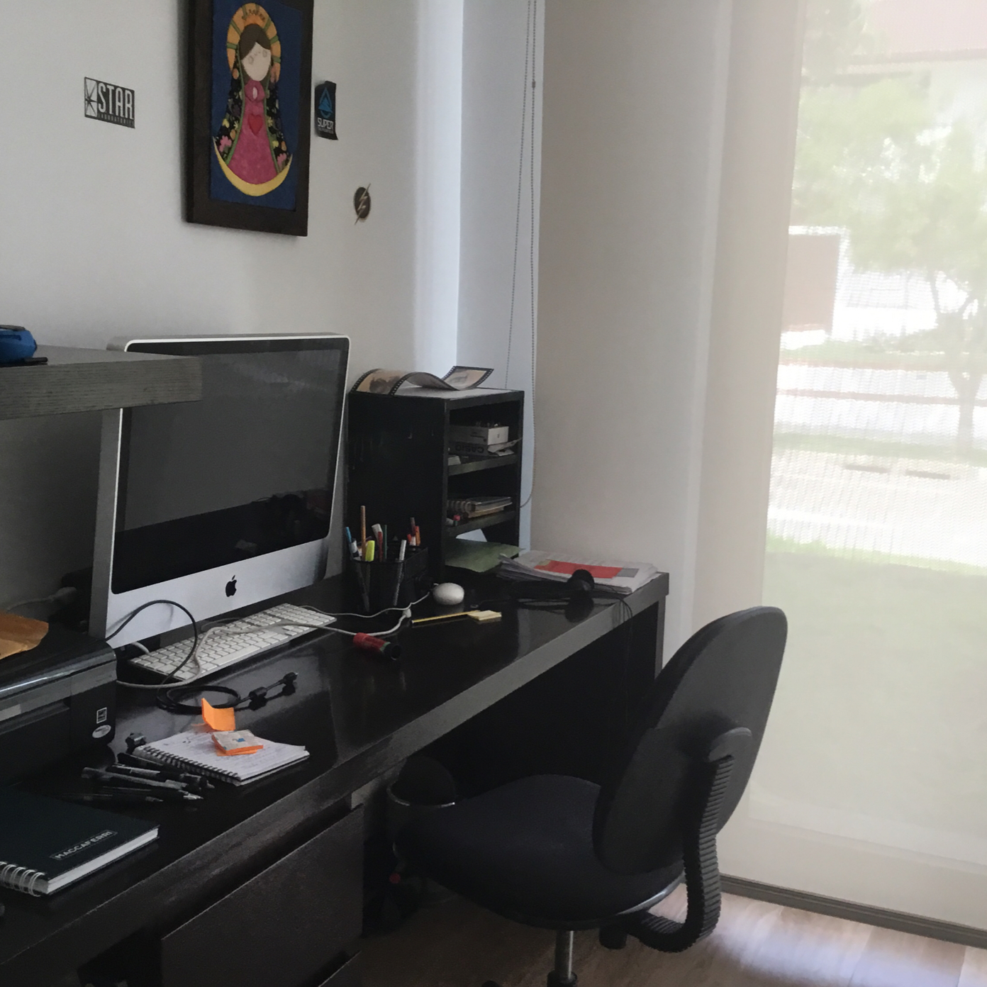 Hier ist mein Schreibtisch wo ich lerne und wo ich die Hausaufgaben mache. Haber wenn die Hausaufgaben Internet benutzt ich kann ich leider nicht machen weil in man Zimmer kein Internet gibt