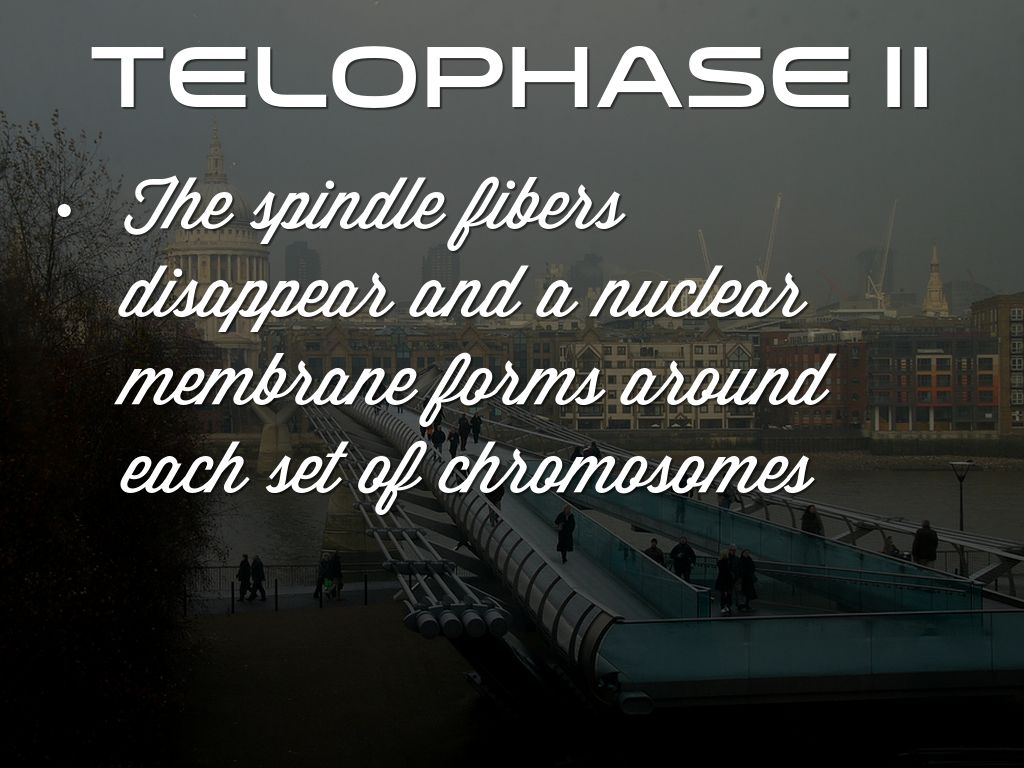 The spindle fibers disappear and a nuclear membrane forms around each set of chromosomes