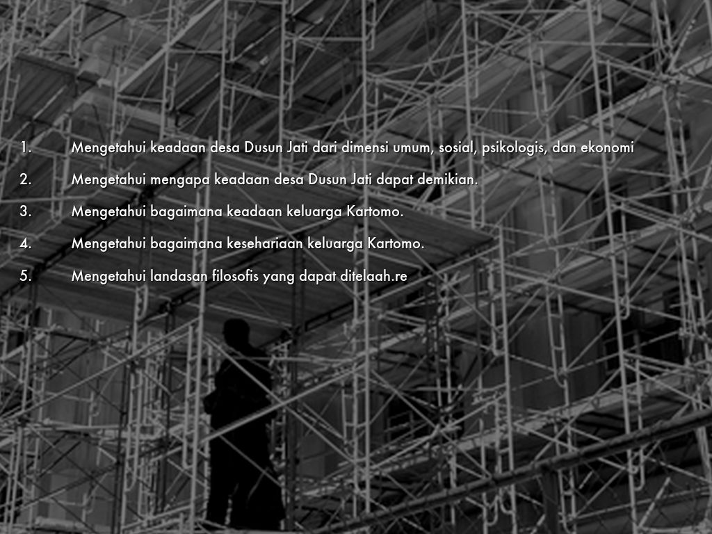 Mengetahui keadaan desa Dusun Jati dari dimensi umum, sosial, psikologis, dan ekonomi