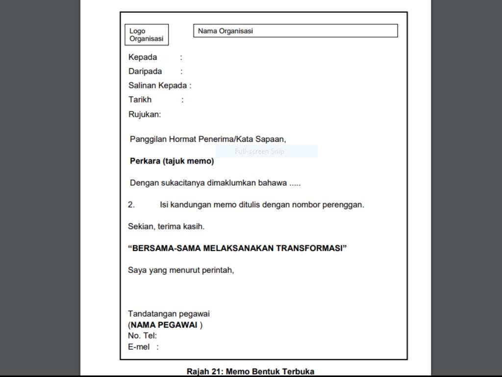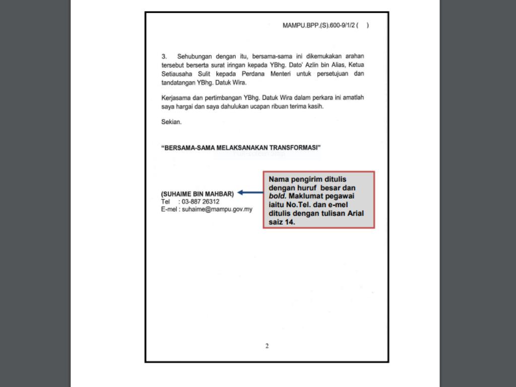 Nombor rujukan , tarikh , perkara , tandatangan dan sebagainya perlu ada