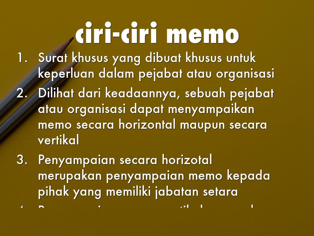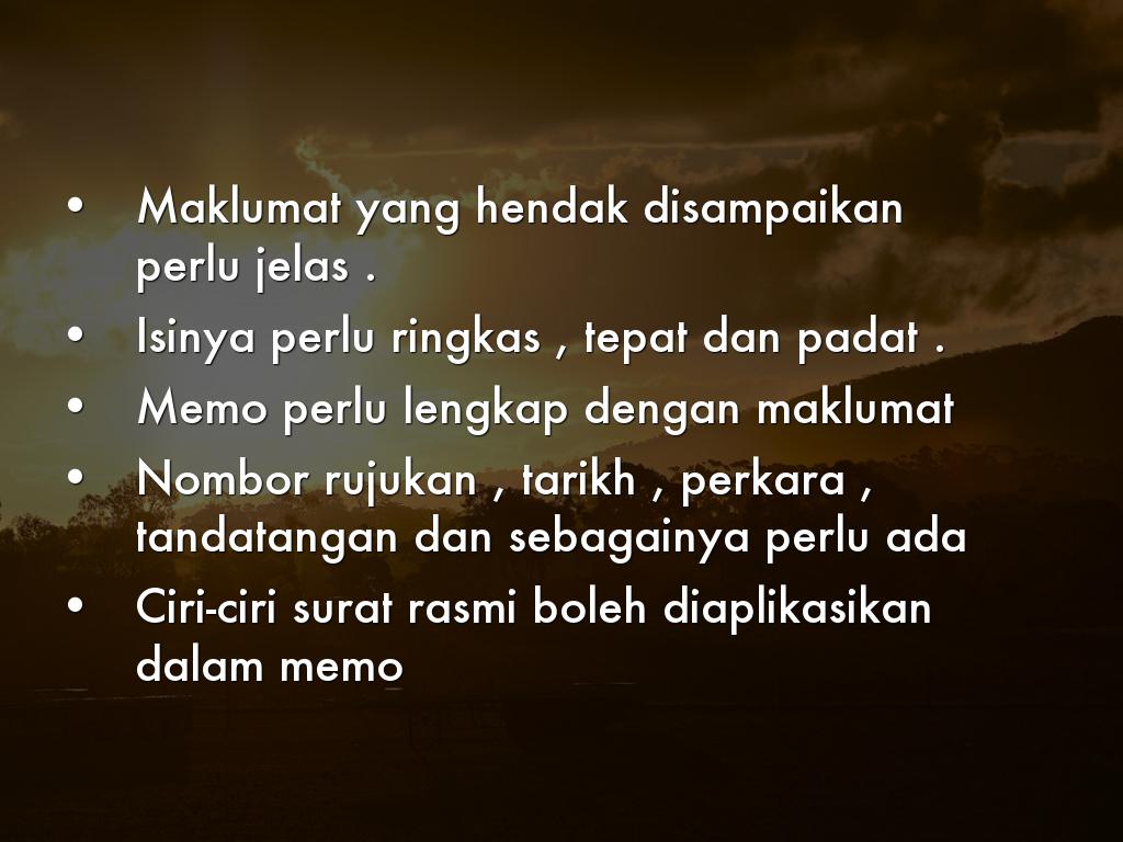 Ciri-ciri surat rasmi boleh diaplikasikan dalam memo