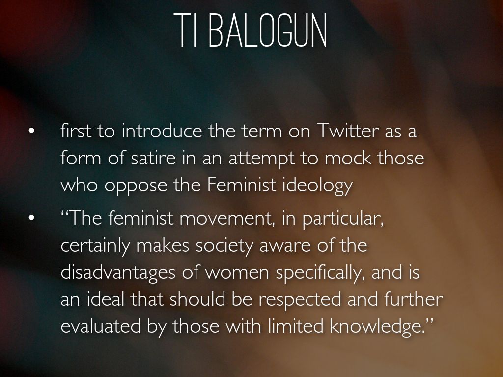 first to introduce the term on Twitter as a form of satire in an attempt to mock those who oppose the Feminist ideology