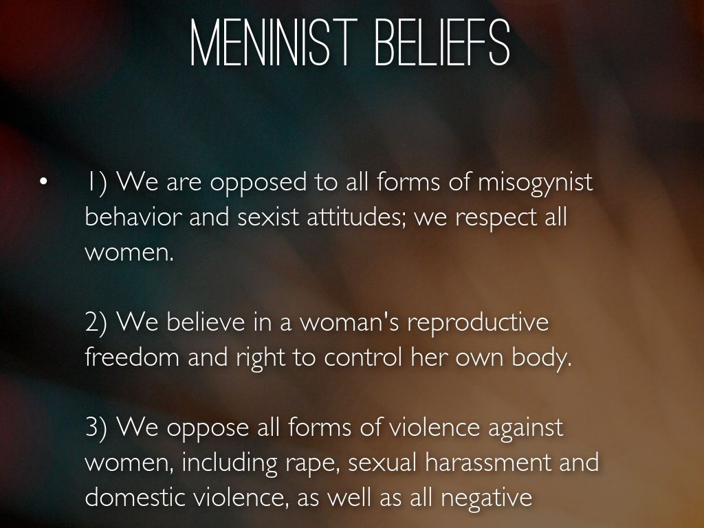 1) We are opposed to all forms of misogynist behavior and sexist attitudes; we respect all women.