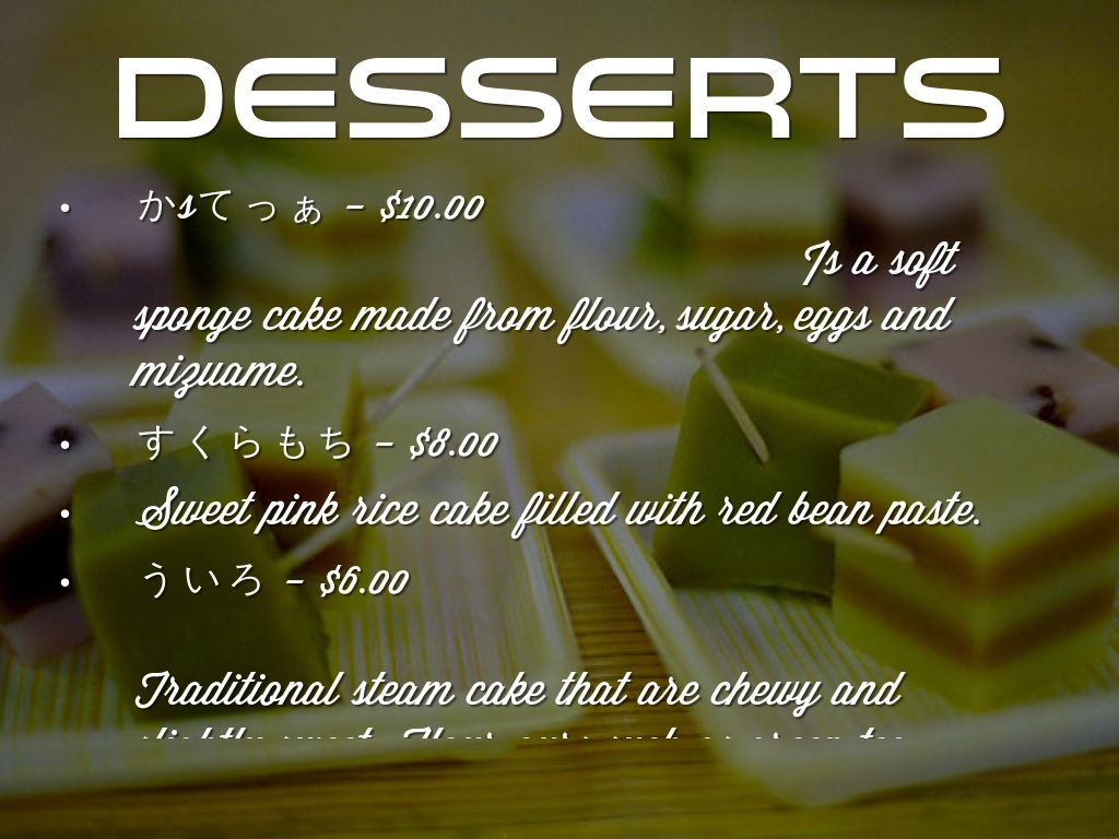 ใฏใใจ - $15.00 A Smooth, soft and fruity dessert made from peaches and spring water.