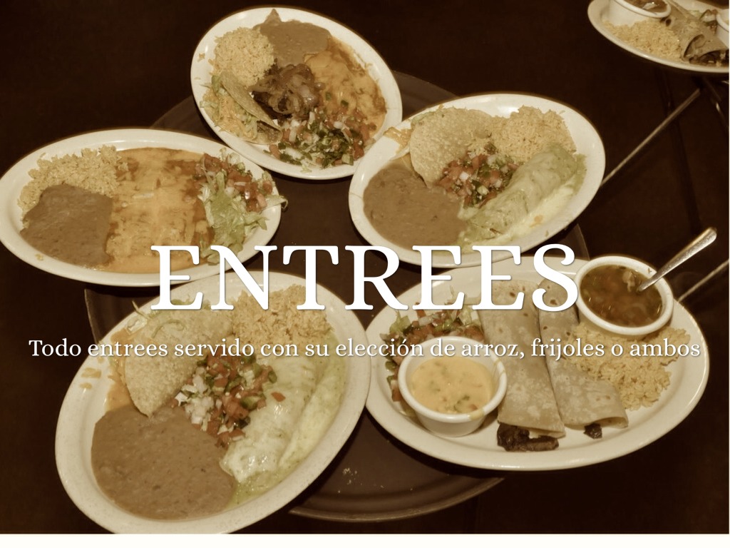 Todo entrees servido con su elección de arroz, frijoles o ambos