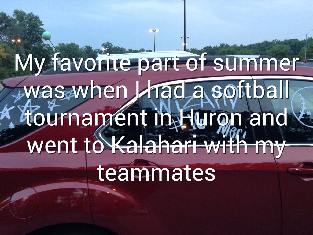 My favorite part of summer was when I had a softball tournament in Huron and went to Kalahari with my teammates