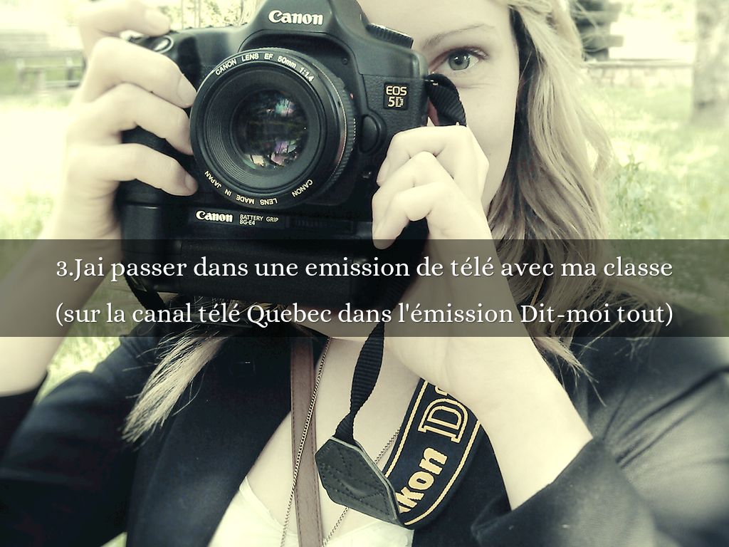 (sur la canal télé Quebec dans l'émission Dit-moi tout)