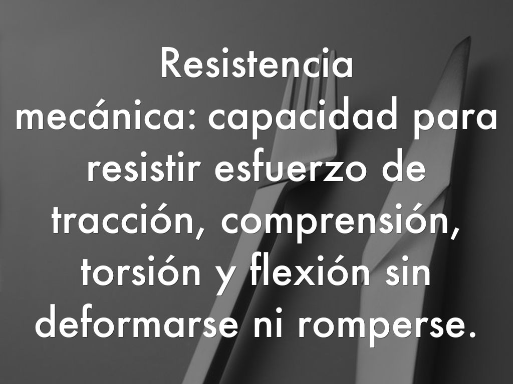 Resistencia mecánica: capacidad para resistir esfuerzo de tracción, comprensión, torsión y flexión sin deformarse ni romperse.