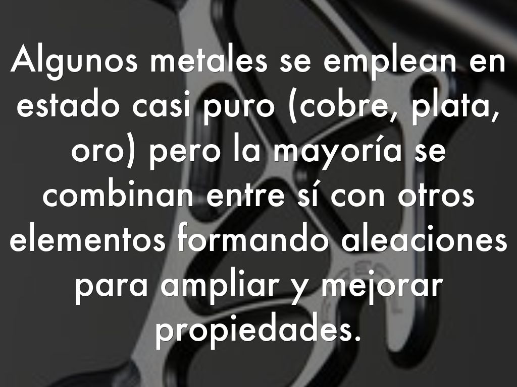 Algunos metales se emplean en estado casi puro (cobre, plata, oro) pero la mayoría se combinan entre sí con otros elementos formando aleaciones para ampliar y mejorar propiedades.