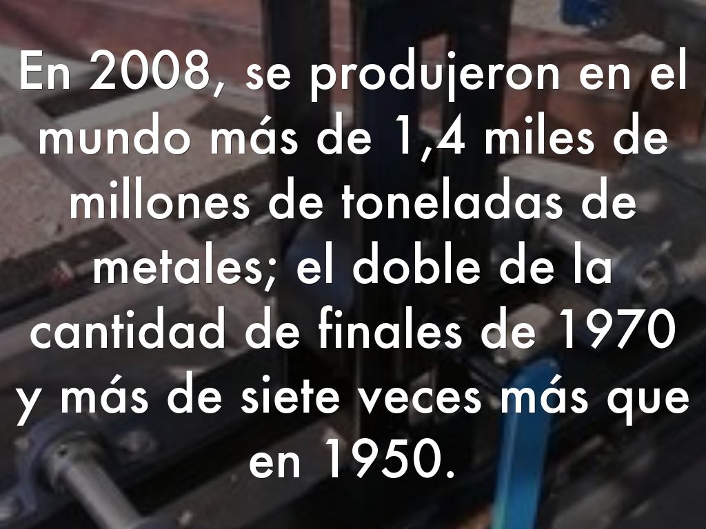 En 2008, se produjeron en el mundo más de 1,4 miles de millones de toneladas de metales; el doble de la cantidad de finales de 1970 y más de siete veces más que en 1950.
