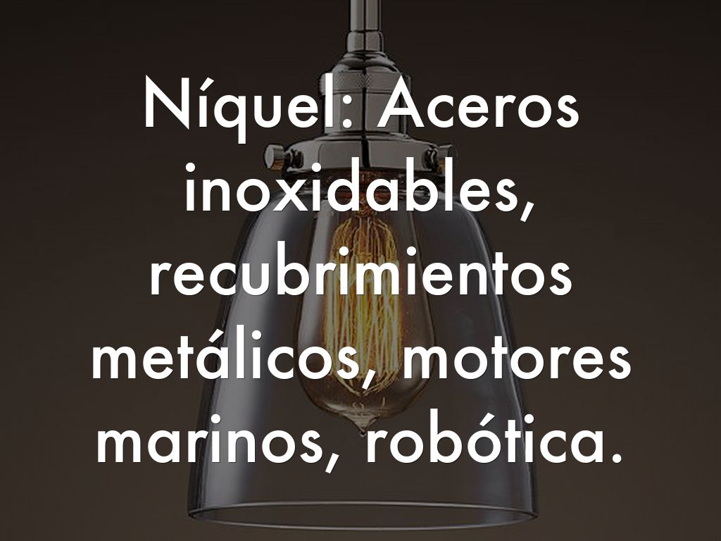 Níquel: Aceros inoxidables, recubrimientos metálicos, motores marinos, robótica.