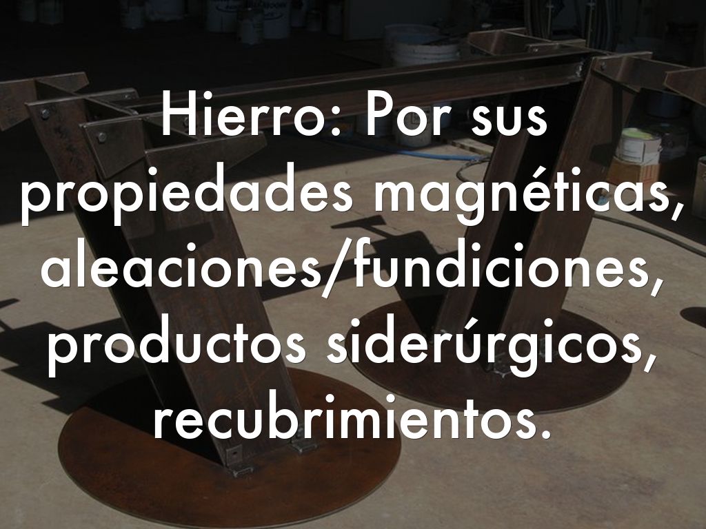 Hierro: Por sus propiedades magnéticas, aleaciones/fundiciones, productos siderúrgicos, recubrimientos.