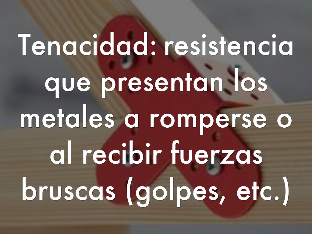 Tenacidad: resistencia que presentan los metales a romperse o al recibir fuerzas bruscas (golpes, etc.)