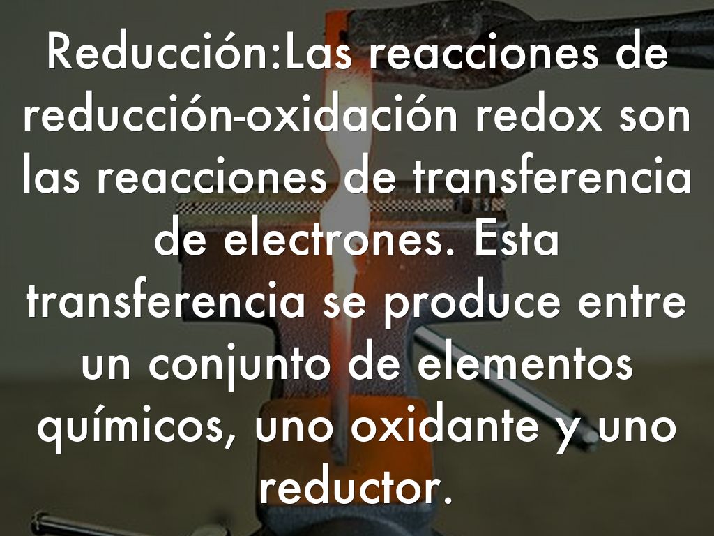 Reducción:Las reacciones de reducción-oxidación redox son las reacciones de transferencia de electrones. Esta transferencia se produce entre un conjunto de elementos químicos, uno oxidante y uno reductor.