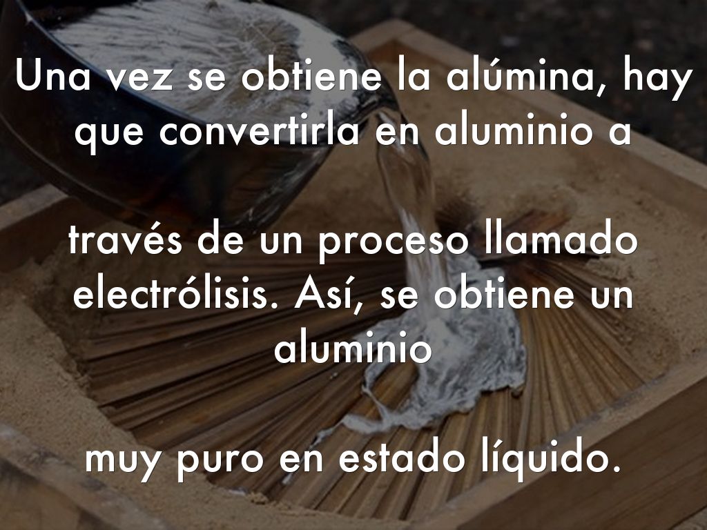 través de un proceso llamado electrólisis. Así, se obtiene un aluminio