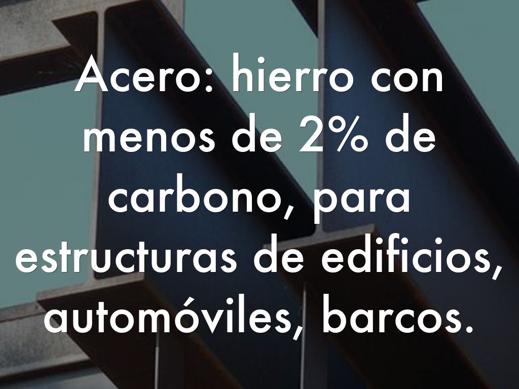 Acero: hierro con menos de 2% de carbono, para estructuras de edificios, automóviles, barcos.
