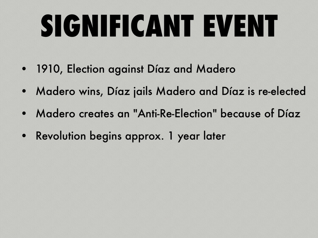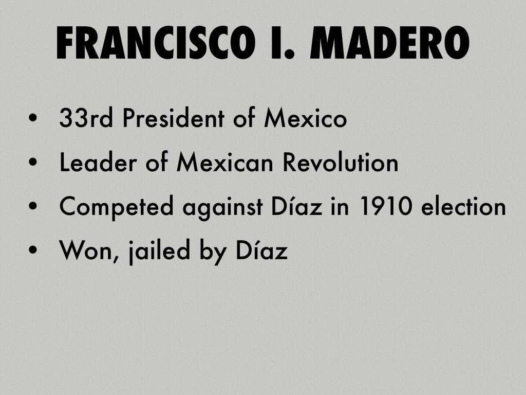Madero wins, Díaz jails Madero and Díaz is re-elected