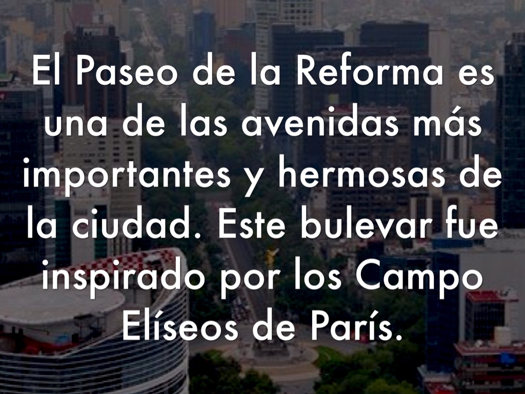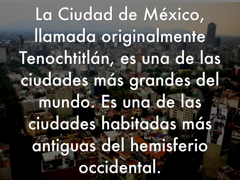La Ciudad de México, llamada originalmente Tenochtitlán, es una de las ciudades más grandes del mundo. Es una de las ciudades habitadas más antiguas del hemisferio occidental.