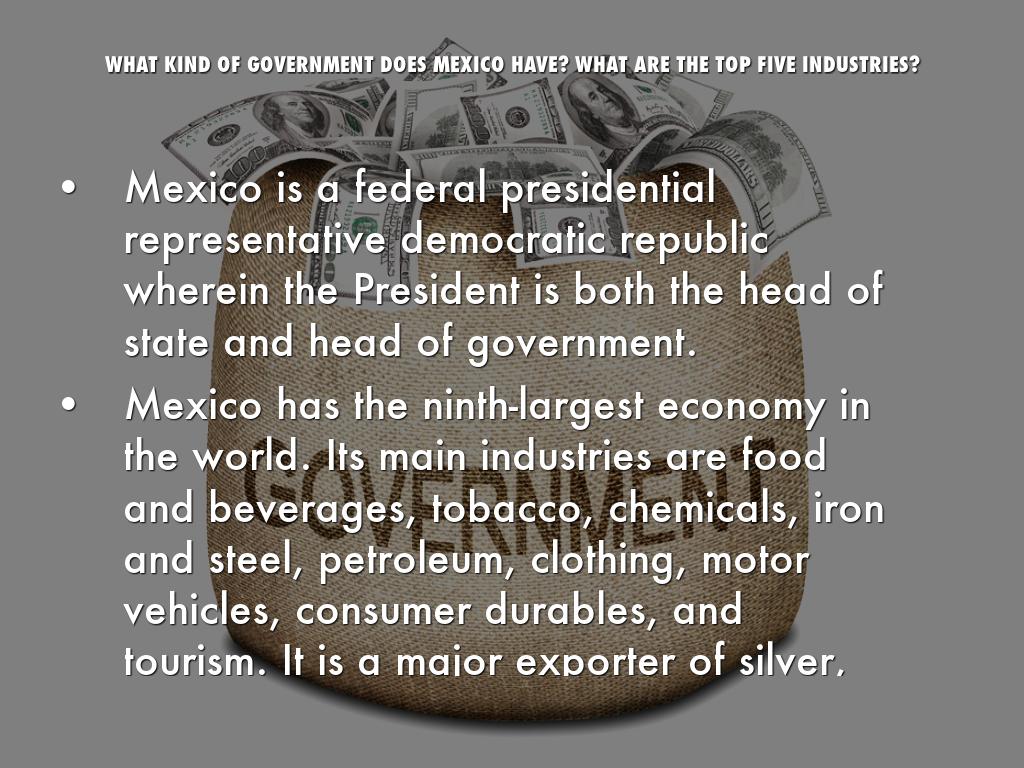 WHAT KIND OF GOVERNMENT DOES MEXICO HAVE? WHAT ARE THE TOP FIVE INDUSTRIES?