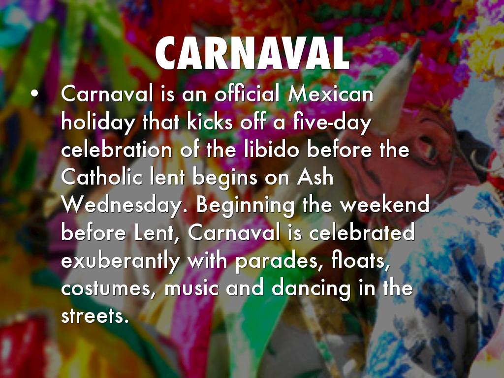 Carnaval is an official Mexican holiday that kicks off a five-day celebration of the libido before the Catholic lent begins on Ash Wednesday. Beginning the weekend before Lent, Carnaval is celebrated exuberantly with parades, floats, costumes, music and dancing in the streets.