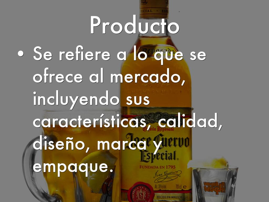 • Se refiere a lo que se ofrece al mercado, incluyendo sus características, calidad, diseño, marca y empaque.