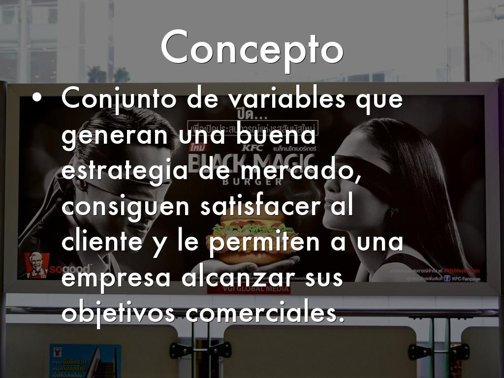 • Conjunto de variables que generan una buena estrategia de mercado, consiguen satisfacer al cliente y le permiten a una empresa alcanzar sus objetivos comerciales.