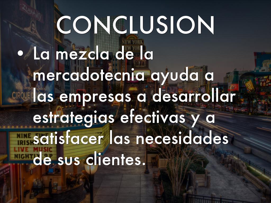 • La mezcla de la mercadotecnia ayuda a las empresas a desarrollar estrategias efectivas y a satisfacer las necesidades de sus clientes.
