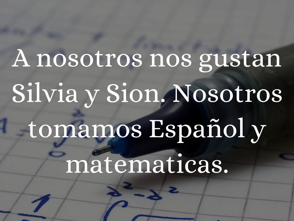 A nosotros nos gustan Silvia y Sion. Nosotros tomamos Español y matematicas.