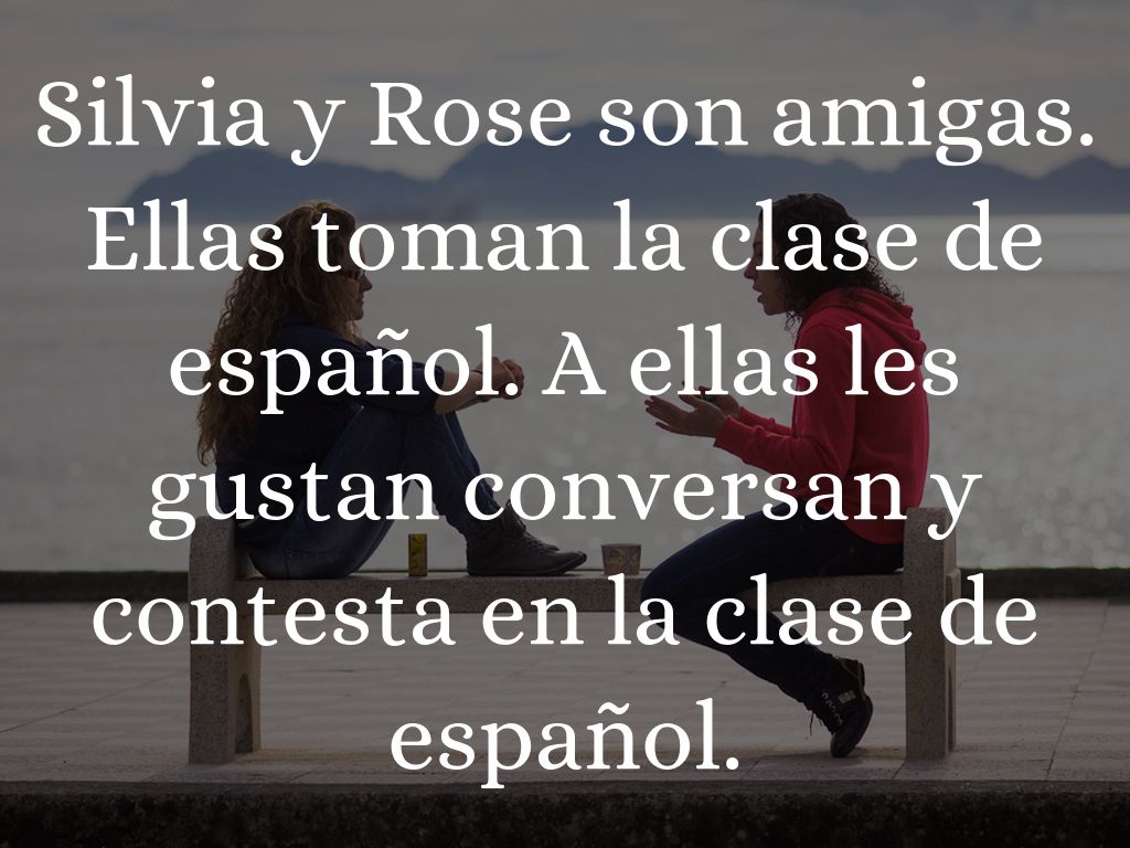 Silvia y Rose son amigas. Ellas toman la clase de español. A ellas les gustan conversan y contesta en la clase de español.