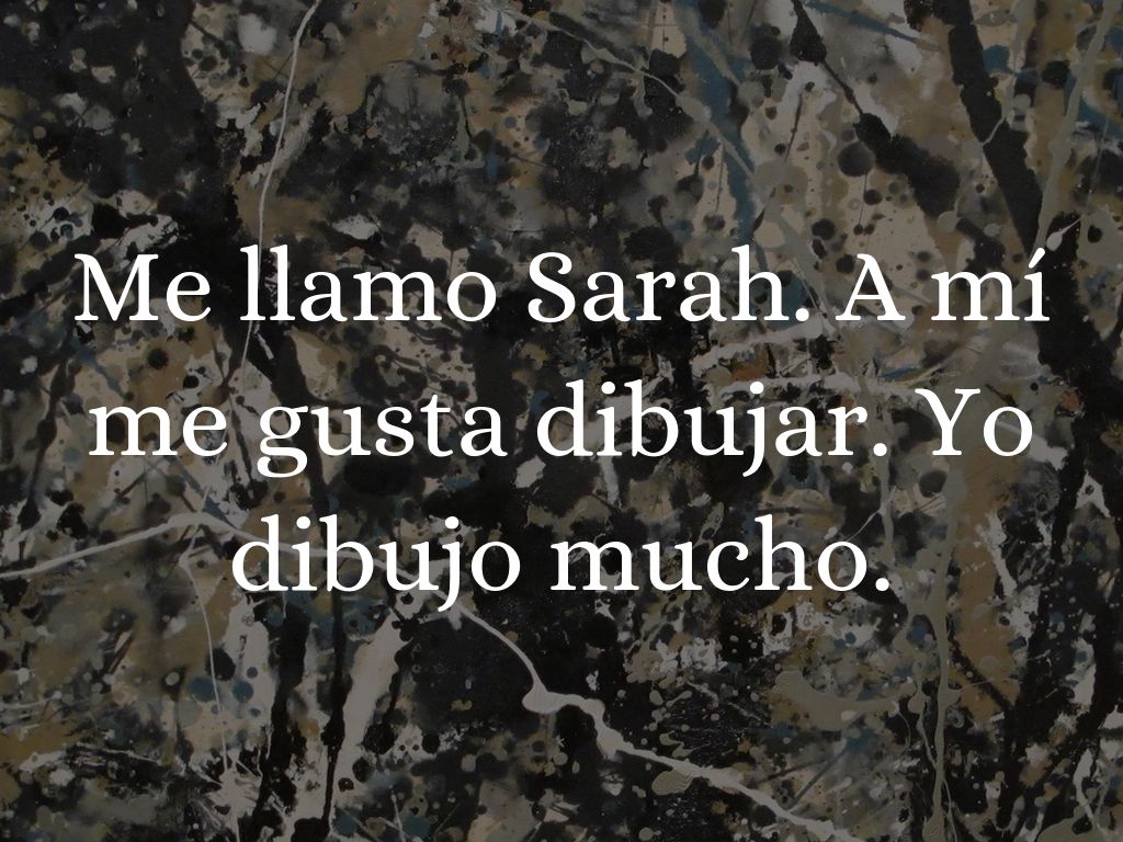 Me llamo Sarah. A mí me gusta dibujar. Yo dibujo mucho.