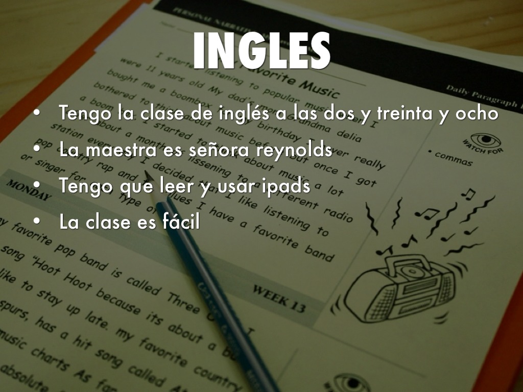 Tengo la clase de inglés a las dos y treinta y ocho