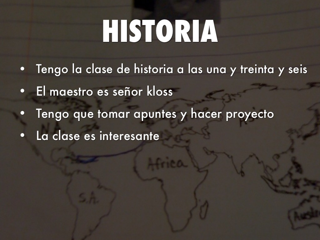 Tengo la clase de historia a las una y treinta y seis