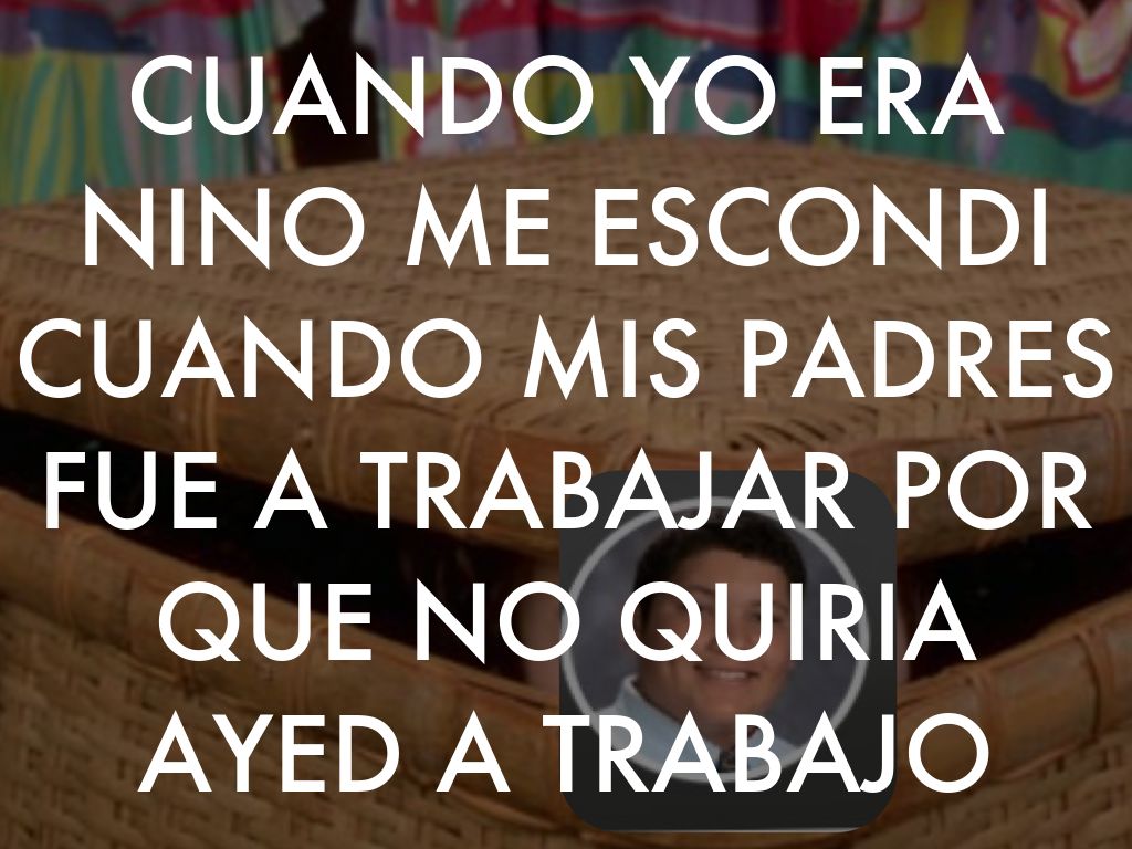 CUANDO YO ERA NINO ME ESCONDI CUANDO MIS PADRES FUE A TRABAJAR POR QUE NO QUIRIA AYED A TRABAJO