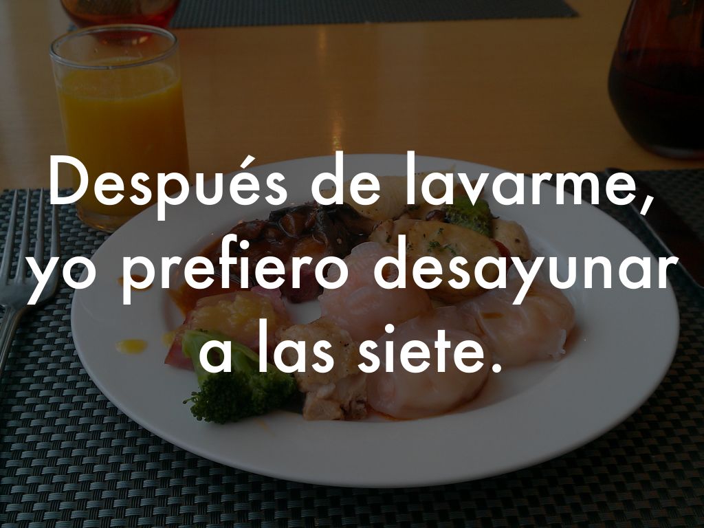 Después de lavarme, yo prefiero desayunar a las siete.