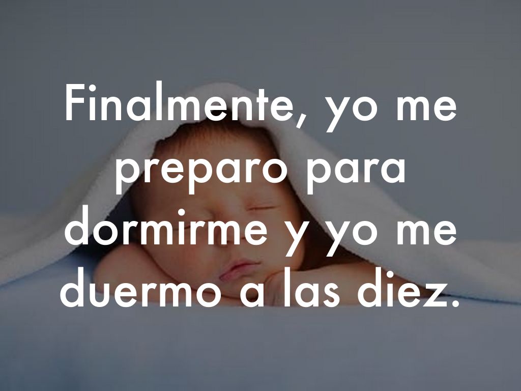 Finalmente, yo me preparo para dormirme y yo me duermo a las diez.