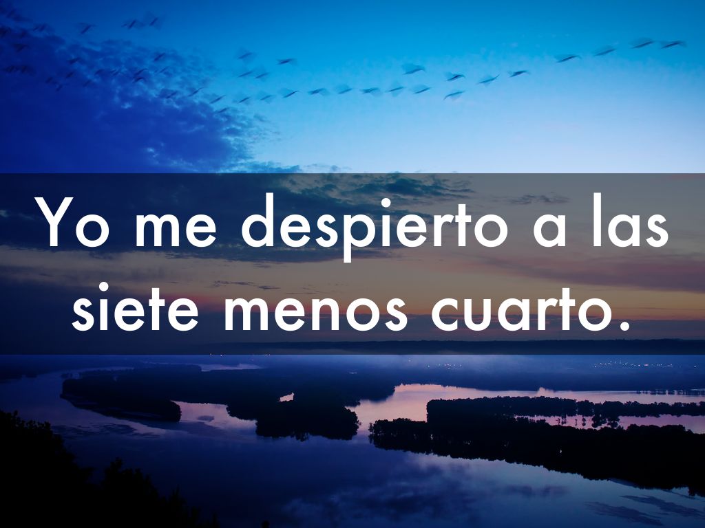 Yo me despierto a las siete menos cuarto.
