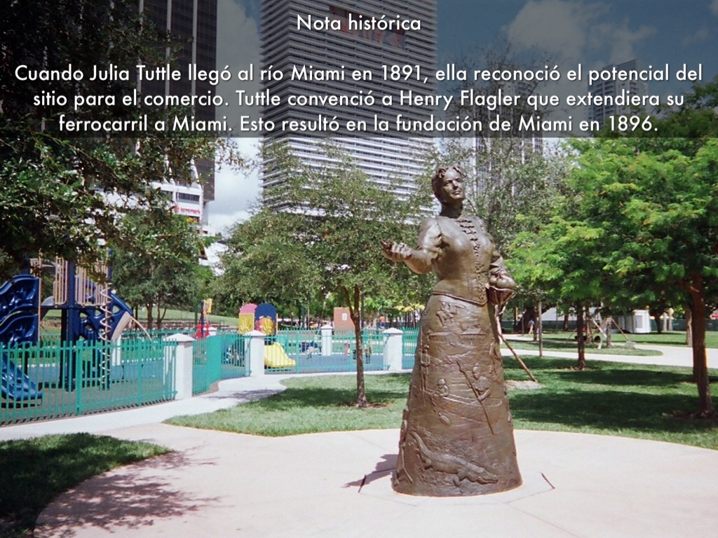 Cuando Julia Tuttle llegó al río Miami en 1891, ella reconoció el potencial del sitio para el comercio. Tuttle convenció a Henry Flagler que extendiera su ferrocarril a Miami. Esto resultó en la fundación de Miami en 1896.