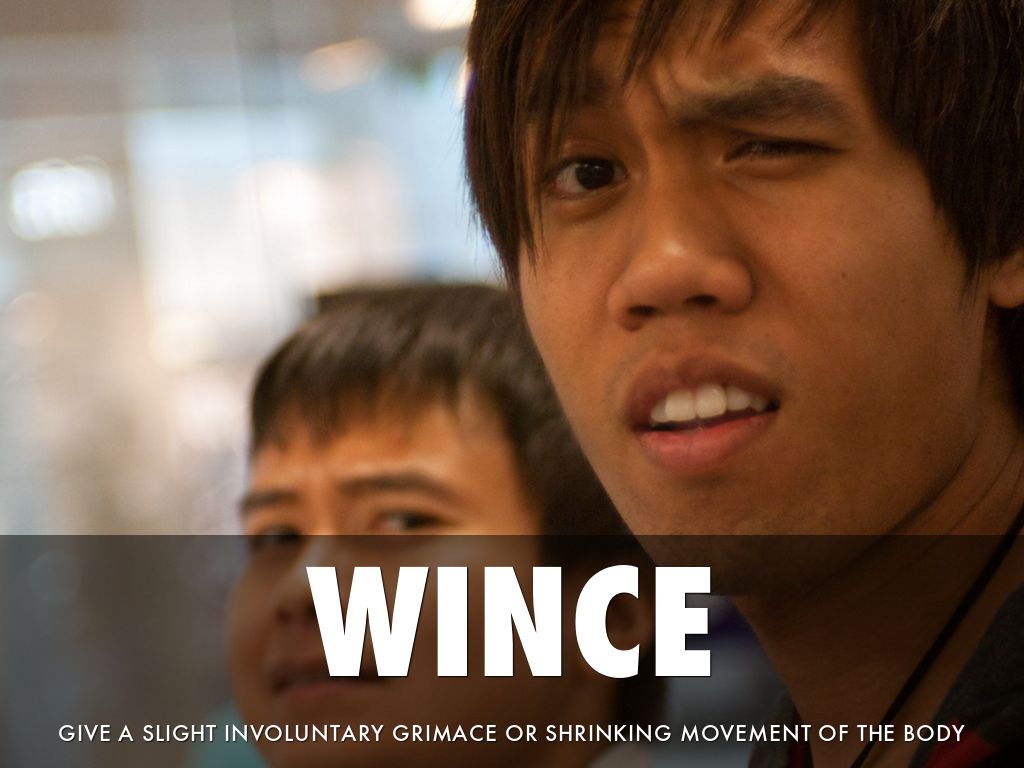 GIVE A SLIGHT INVOLUNTARY GRIMACE OR SHRINKING MOVEMENT OF THE BODY