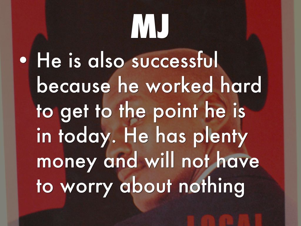 He is also successful because he worked hard to get to the point he is in today. He has plenty money and will not have to worry about nothing
