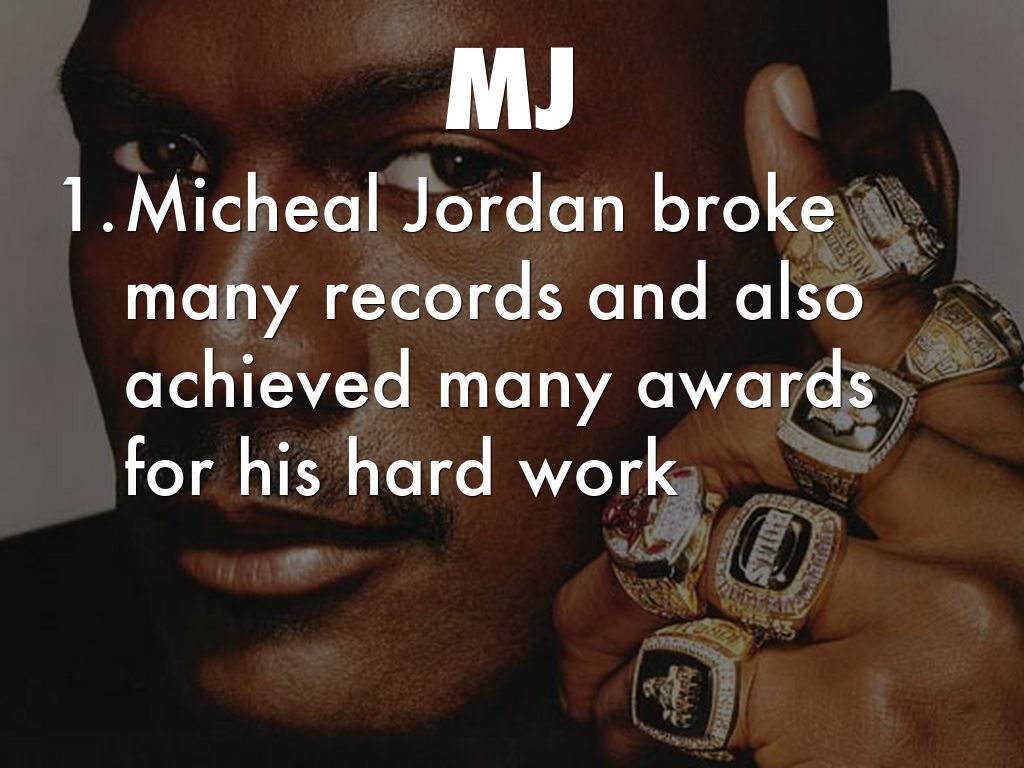 Micheal Jordan broke many records and also achieved many awards for his hard work