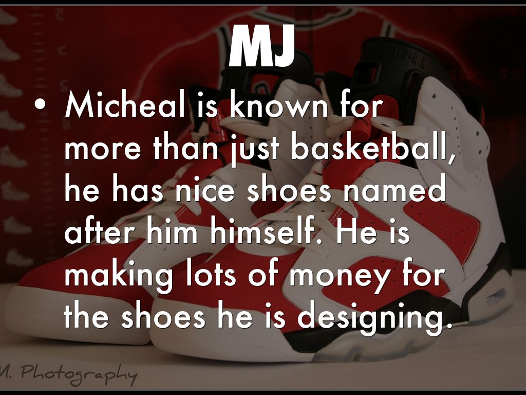 Micheal is known for more than just basketball, he has nice shoes named after him himself. He is making lots of money for the shoes he is designing.