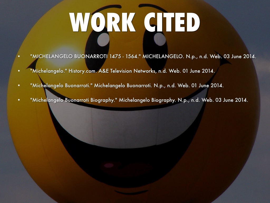 "Michelangelo Buonarroti Biography." Michelangelo Biography. N.p., n.d. Web. 03 June 2014.